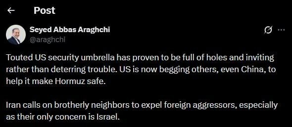 📢 Le détroit d'Ormuz est ouvert à la navigation, mais les pays attaquant l'#Iran auront des difficultés à le traverser, selon le ministre iranien des Affaires étrangères, Abbas Araghchi. RT en français • Osez questionner !