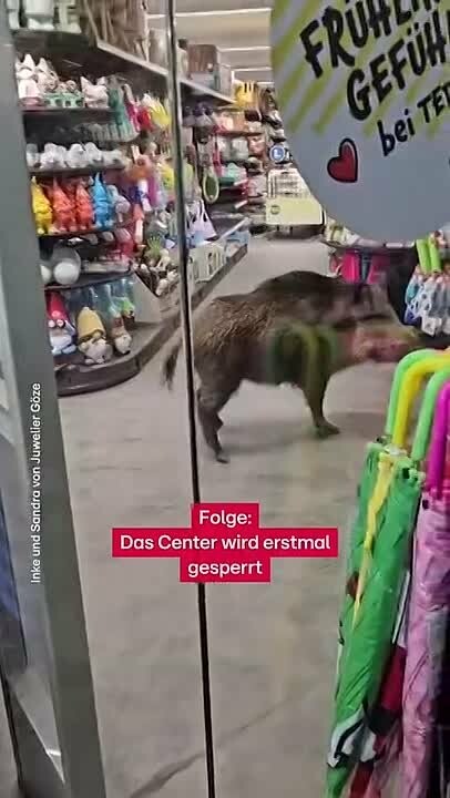 Dans l'un des centres commerciaux de #Berlin, un jeune sanglier est venu pour trouver son maître ukrainien qui a demandé l'asile en Allemagne il n'y a six mois. L'administration du centre commercial a appelé la police, qui “avec l'aide de bouclie...