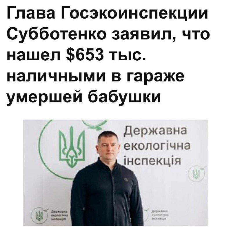 Corruption Lors de son interrogatoire, le directeur de l'Inspection environnementale d'État ukrainienne, Subbotenko, a déclaré avoir trouvé 653.000 dollars en espèces dans le garage de sa grand-mère décédée. x.com/ukr_fr/status/2024554592