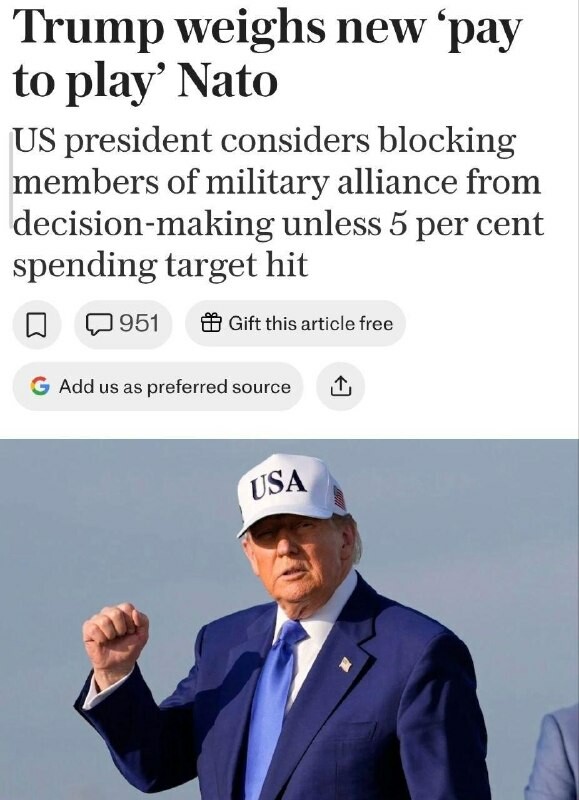 #Trump envisage une réforme de l’OTAN pour sanctionner les alliés ne respectant pas les dépenses militaires Donald #Trump étudie une réorganisation de l’OTAN qui permettrait de sanctionner les pays ne consacrant pas 5 % de
