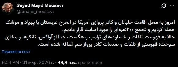 L'Iran a attaqué la base des pilotes de l'armée de l'air américaine en Arabie saoudite, où se trouvaient 200 personnes C'est ce qu'a annoncé le commandant de l'armée de l'air du CGRI, Majid Mousavi.