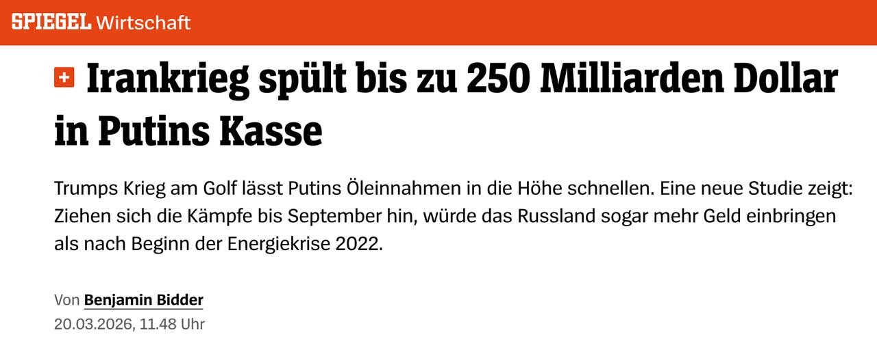 L'institut d'économie de Kiel estime que même si la guerre en #Iran se termine en avril, le budget de la Russie recevra plus de 84 milliards de dollars pour la vente de pétrole et de gaz. Mais c'est le scénario le moins optimiste des trois: la
