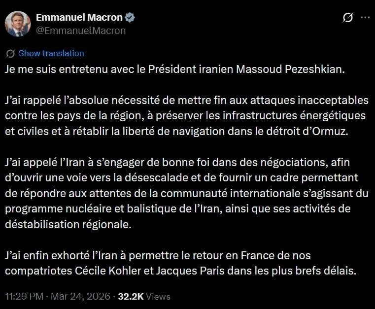 «J'ai une conversation avec le président iranien Massoud Pezeshkian», a déclaré , donnant des conseils précieux à l'Iran. «J'ai souligné la nécessité absolue de mettre fin aux attaques inacceptables contre les pays de la région