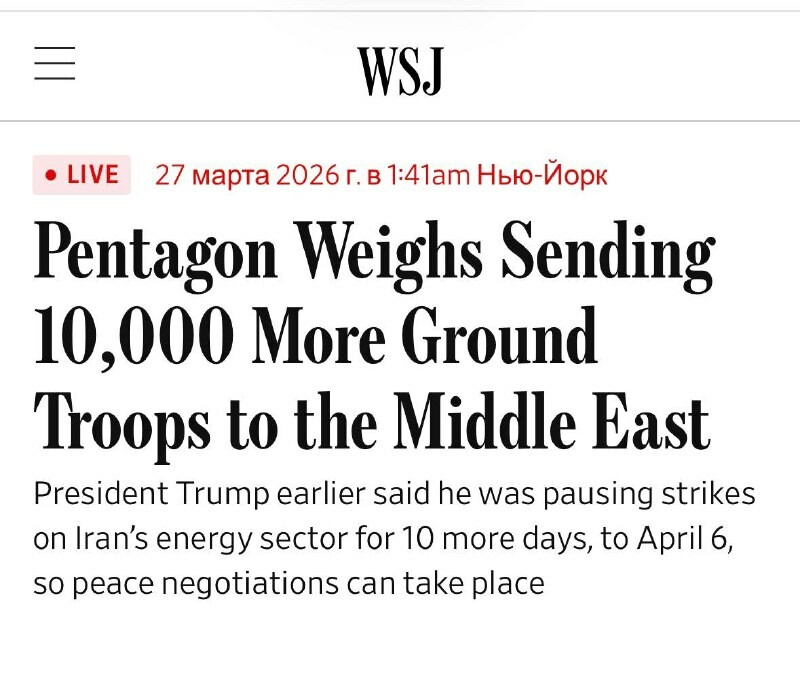 💬 Les États-Unis pourraient envoyer environ 10 000 soldats supplémentaires au Moyen-Orient, indique le Wall Street Journal. RT en français • Osez questionner !