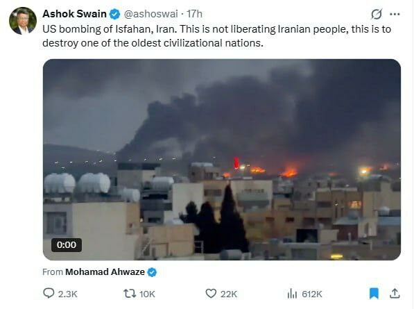 Un professeur de sciences politiques de l'université d'Uppsala en Suède, en publiant une vidéo des attaques américaines contre Ispahan, a écrit : « Ce n'est pas la libération du peuple iranien, mais la destruction d'une des plus anciennes nations...