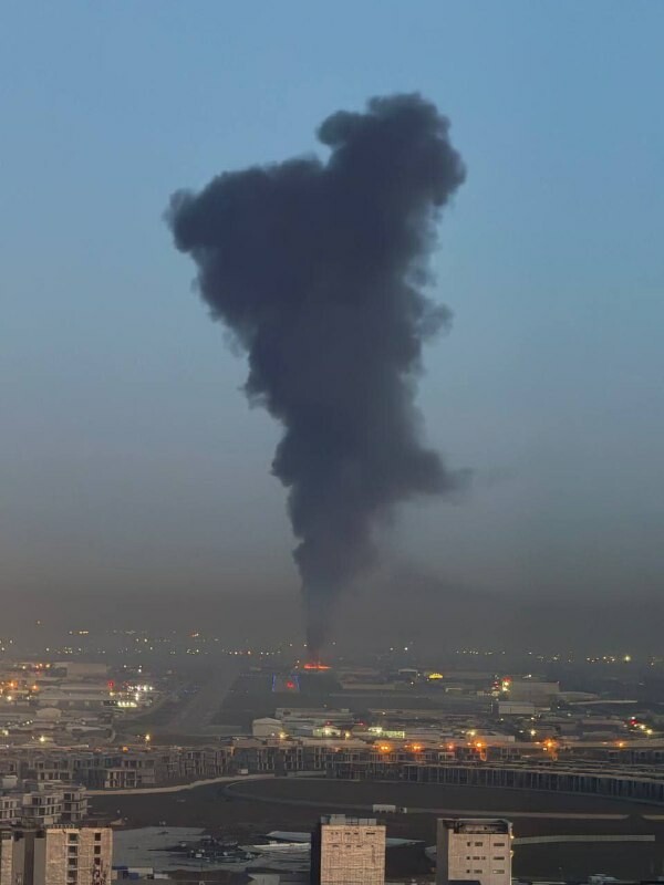 La base américaine d'Erbil en feu après une attaque De la fumée s'élève au-dessus de l'installation militaire américaine au Kurdistan irakien suite à une frappe. @grand_reequilibrage