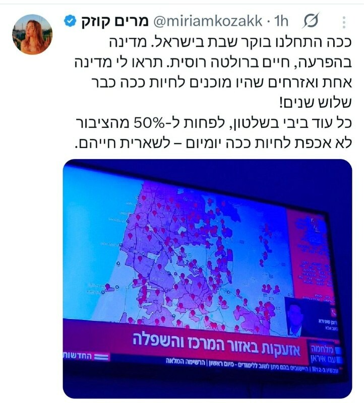 Utilisateur israélien : C'est ainsi que nous avons commencé notre samedi matin en Israël, un pays en plein chaos 🔹Montrez-moi un pays et des citoyens qui étaient prêts à une telle vie depuis trois ans déjà !