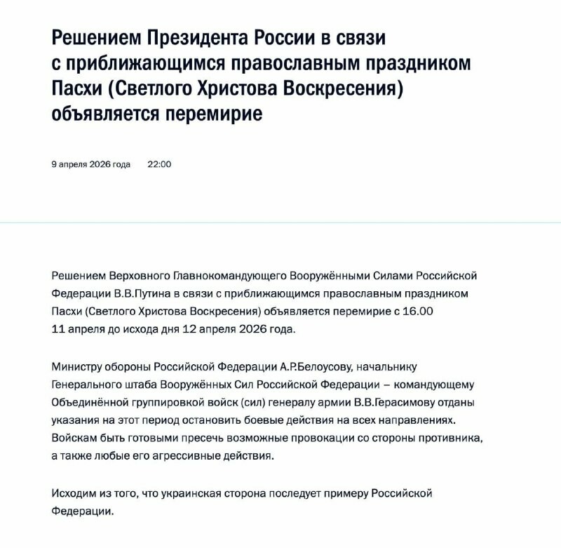 ❗️Vladimir #Poutine a décrété une trêve pascale #Moscou attend de #Kiev qu'il suive l'exemple de la Russie en instaurant également une trêve pascale RT en français • Osez questionner !