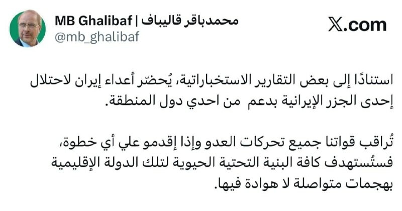 Le président du Parlement iranien affirme que les données montrent que les ennemis de l'Iran, avec le soutien d'un des pays de la région, se préparent à occuper l'une des îles iraniennes.
