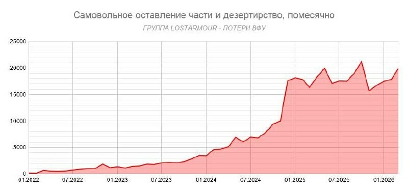 Déserteurs des forces armées ukrainiennes au 1er avril 2026 Des données sur les statistiques désertion des forces armées ukrainiennes au cours des derniers mois (après que #Kiev les ait officiellement classées secret défense) sont apparues sur le