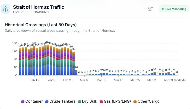 📊 Daily breakdown by type and number of ships passing through the Strait of Original Post Follow TRN 👈