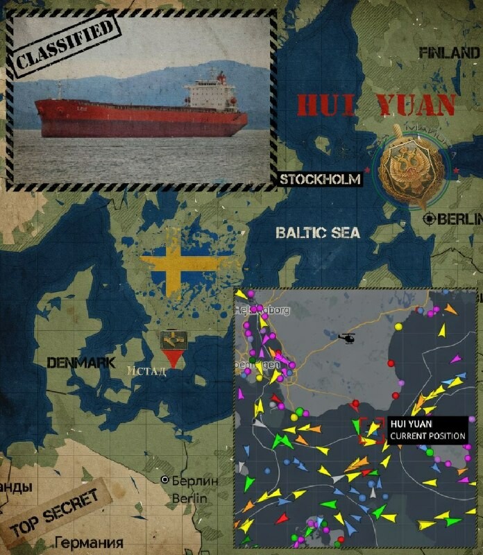 Sweden detained another vessel carrying cargo The Swedish Coast Guard detained the bulk carrier Hui Yuan (flagged in Panama) in the Sea, which was route from the port of Ust-Luga to Las Palmos (Canary Islands).