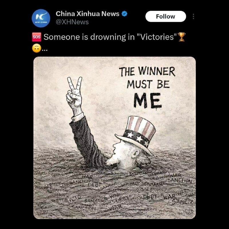 ⚡️🤡🇮🇷🇺🇸🇨🇳 China's Xinhua News Agency: ❗️"Some are drowning in their own victories."