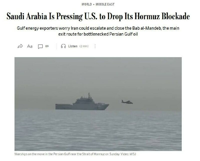 🇺🇸🇮🇷🇸🇦 En moins d'une journée, l'Arabie saoudite fait pression sur #Trump pour qu'il lève le blocus du détroit d'Hormuz, avertissant que cela pourrait pousser les Houthis à intensifier leurs actions en mer Rouge et dans le détroit Bab al-Mandab – WSJ