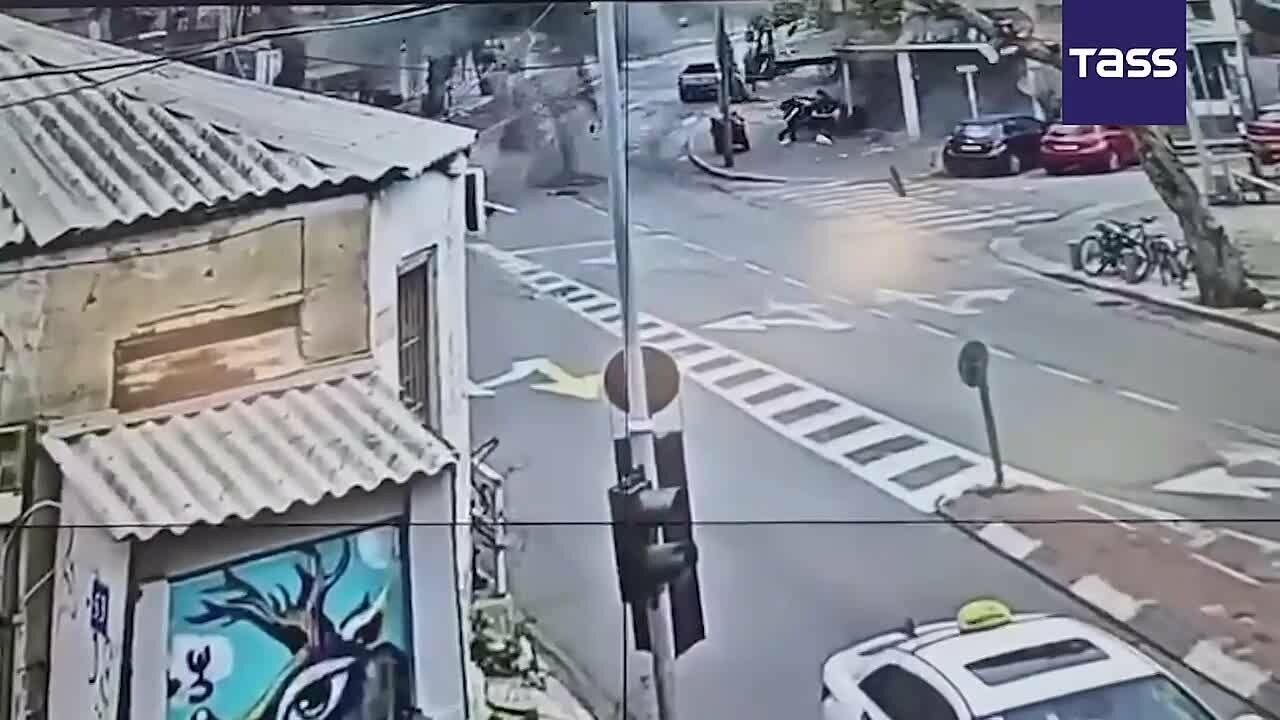 La police israélienne a publié des images de la chute d’une bombe à sous-munitions dans une rue de Tel-Aviv. Selon les forces de l’ordre, trois personnes ont été légèrement blessées.Vidéo: chaîne #Telegram officielle du service de presse de la po...