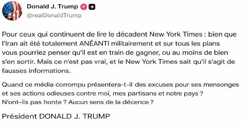 🇺🇸 🔖 et le New York Times 🗣Donald rejette les récits médiatiques sur l’, accuse la presse de travestir la réalité… et réclame des excuses publiques. RT en français • Osez questionner !