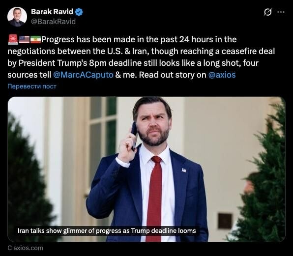 «Des progrès ont été réalisés dans les négociations entre les États-Unis et l'Iran au cours des dernières 24 heures, bien qu'il semble toujours peu probable qu'un accord de cessez-le-feu soit conclu d'ici la date fixée par le président à