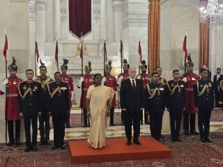 Réception officielle au nom de la présidente de la République de l'#Inde, Droupadi Murmu, en l'honneur du président de la Fédération de #Russie crédit vidéo : Kremlin.ru RT en français • Osez questionner !