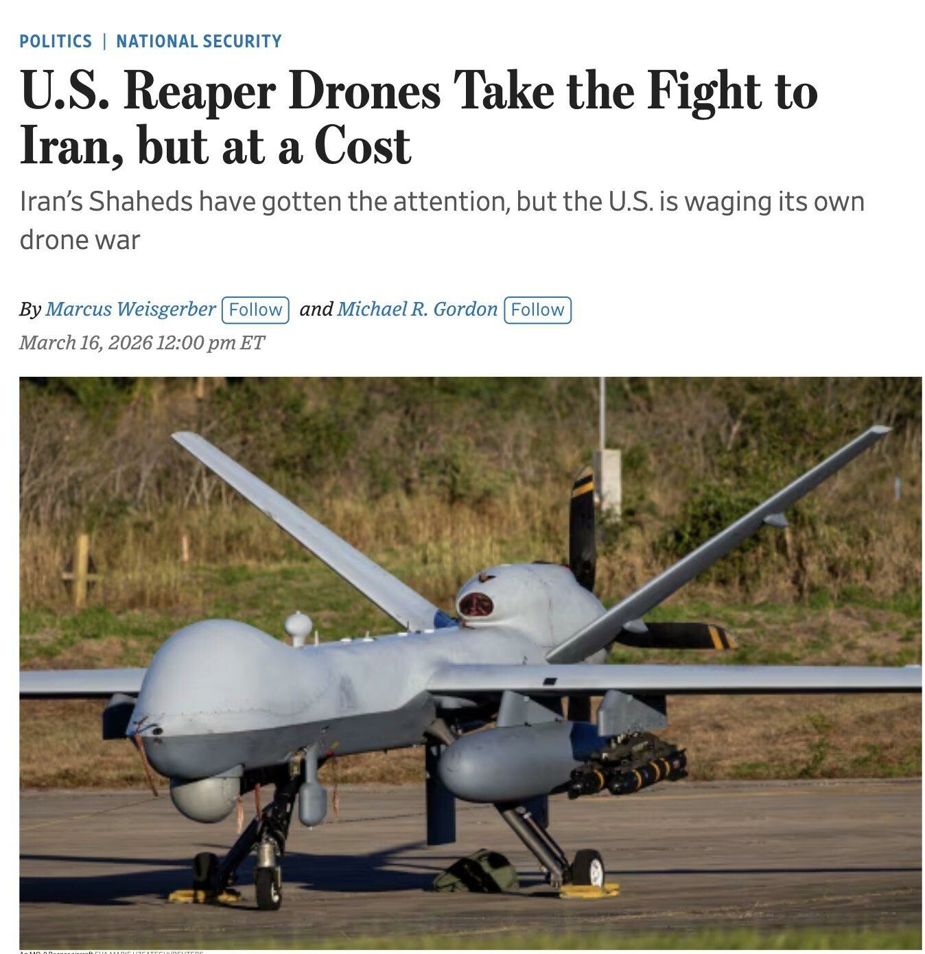 Les États-Unis ont perdu environ une douzaine de drones MQ-9 Reaper jusqu'à présent, dont l'un a été abattu accidentellement par un État du Golfe.Les États-Unis ont fait voler plus de 10 drones MQ-9 au-dessus de l'Iran.WSJ!