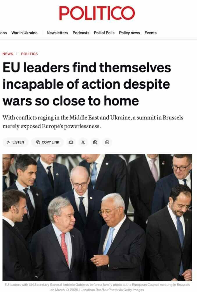 Le journal souligne l’incapacité de l’UE à réagir aux événements qui affectent directement l’Europe elle-même — que ce soit la guerre en #Iran ou le conflit en cours en Ukraine.« Concernant l’Iran