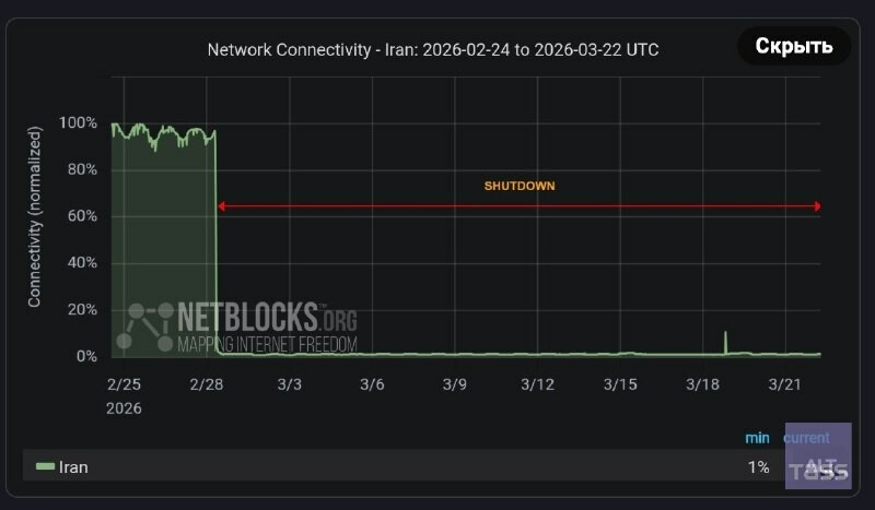 🇮🇷 La coupure d'internet en dure depuis plus de 500 heures, selon l’ONG de surveillance de la cybersécurité Netblocks.