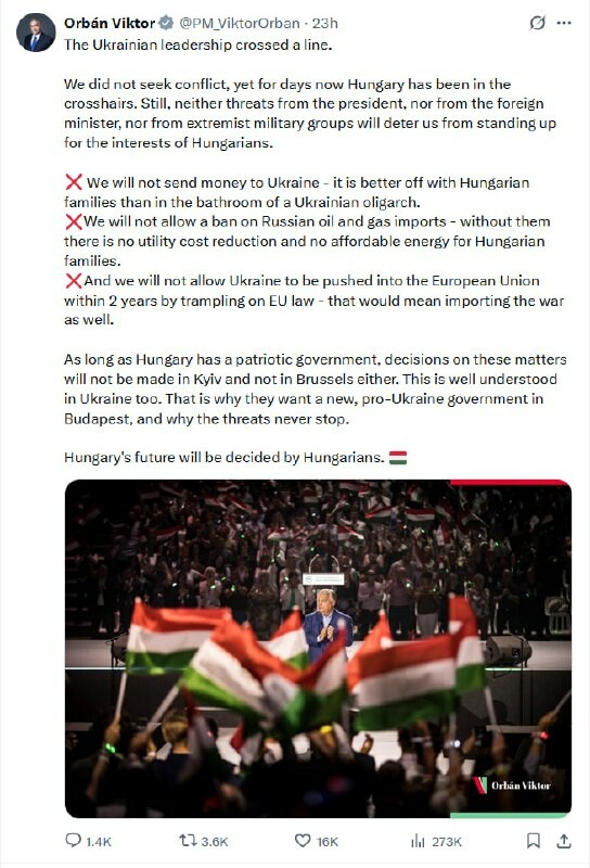 Le Premier ministre hongrois, Viktor #Orbán, a réaffirmé que l'#Ukraine ne rejoindrait pas l'#UE, soulignant que « les dirigeants ukrainiens ont franchi la ligne rouge ». RT en français • Osez questionner !