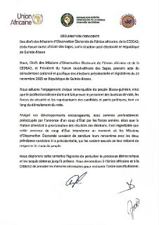 Déclaration conjointe des chefs des missions électorales de la #CÉDÉAO, de l'Union africaine et du Forum ouest-africain des Sages au sujet de la situation post-électorale en République de Guinée-Bissau. RT en français