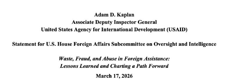 Аппарат генинспектора #USAID выявил нарушения при аудите предоставленной Украине помощи на $26 млрд. Недавняя проверка показала, что агентство не имело рычагов, чтобы гарантировать целевое расходование средств, контроль вёлся удалённо