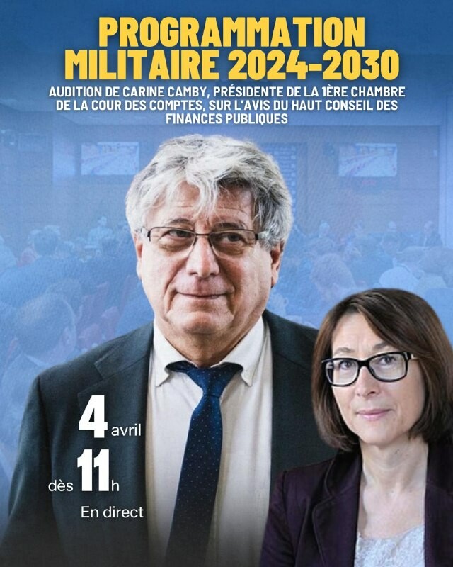 🔵 En direct - Suivez l’audition sur l’avis du Haut Conseil des finances publiques relatif au projet de loi actualisant la programmation militaire 2024-2030. ▶️