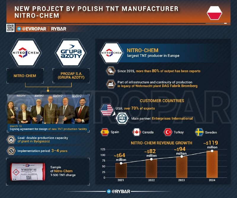 Tr de @ Chimie de la Guerre La Pologne augmente la production de TNT Nitro-Chem polonaise a annoncé une expansion de la production de TNT — un composant stratégique pour les