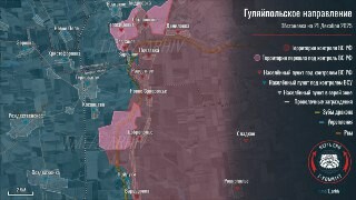 Revue du front, carte publiée par le canal DIVGEN Карта СВО. Situation du front sur la ligne de Zaporojie, extrémité Est de la ligne, bataille de Gouliaïpole et de la ligne de Dobropole. Les forces ukrainiennes étaient bousculées et enfoncées depuis plusieurs semaines, alors que les troupes alignées étaient de médiocres unités de la Défense territoriale, en principe dévolues à la défense de leur région, ou à tenir des positions de seconde ou troisième ligne. Ces troupes, les 102e