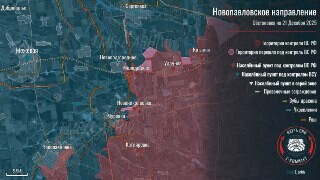 Revue du front, cartes publiées par les canaux Z-Komitet et DIVGEN Карта СВО. Situation du front sur la ligne de Dniepropetrovsk, secteur Sud, l'offensive russe se poursuit et progresse, avec la prise de quelques villages alors que la situation s'aggrave pour les FAU. Comme le montre bien la seconde carte (ligne violette), les Russes ont enfoncé la ligne de défense ukrainienne et pousse plein Ouest pour déborder la ligne de Zaporojie, et plein Nord pour progresser vers le Sud de #