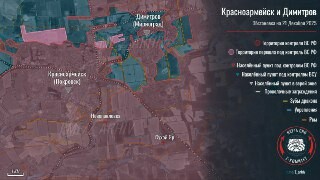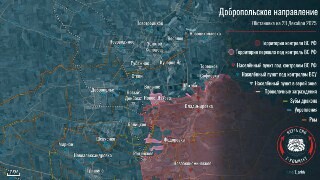 Revue du front, carte publiée par le canal Z-Komitet, situation du front en face de Dobropole (à ne pas confondre avec celui du Sud), positions entre la poche de Mirnograd et Konstantinovka. Un gros de forces ukrainiennes se trouve dans le secteur, région où se déroulent depuis des semaines des combats acharnés. Après avoir reculé sous la pression ukrainienne, qui cherchait à détruite cette tête de pont, pour dégager la poche de Mirnograd, les Russes ont tenu le choc et progressent