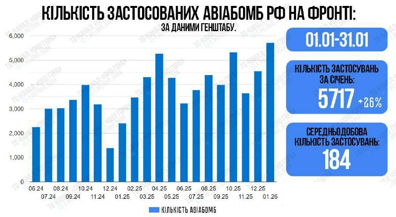 Selon des sources officielles ukrainiennes, les forces armées russes ont utilisé 5717 bombes aériennes guidées en janvier 2026 (en moyenne 184 bombes par jour), ce qui constitue un record pour toute la durée de la guerre. * * * * * * RUSSOSPHÈRE