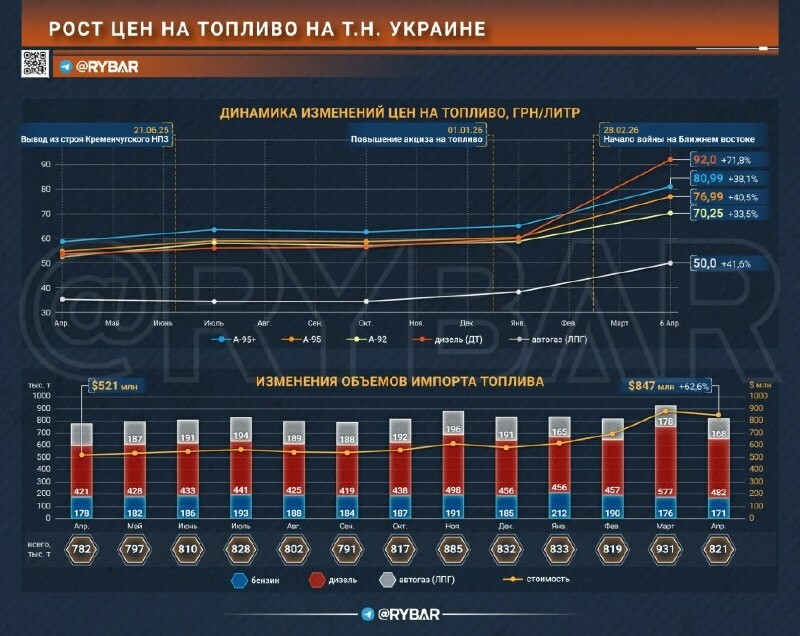 Fonctionnant sur les réserves Les frappes systématiques contre l'infrastructure pétrolière ukrainienne et les perturbations des approvisionnements externes ont déclenché une augmentation cascade des prix du carburant #Ukraine, dite « soi-disant ».